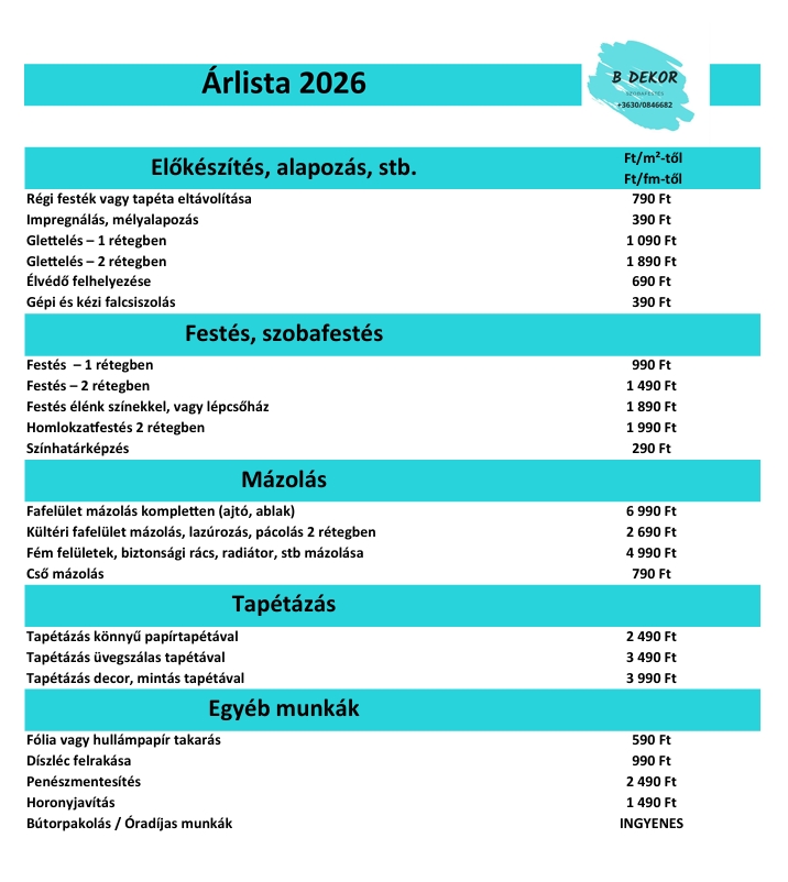 © 2023 - 2026 B Dekor Szobafestés